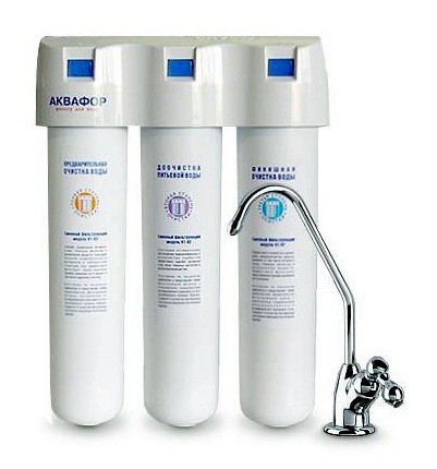 Водоочиститель АКВАФОР КРИСТАЛЛ (тройка+кран) Водоочиститель АКВАФОР Кристалл для мягкой воды предназначен для очистки воды от хлора, органических соединений и других примесей. Также данный фильтр обеззараживает воду. Ресурс 8000л.