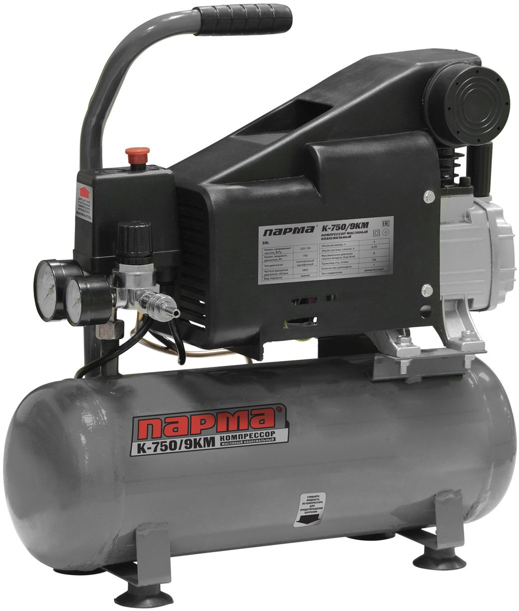 Компрессор поршневой Парма K-750/9КМ масляный 126л/мин 9л 750Вт серый/черный