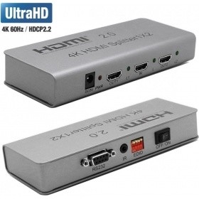 ORIENT HDMI 4K Splitter HSP0102H-2.0, 1->2, HDMI 2.0/3D, UHDTV 4K/ 60Hz (3840x2160)/HDTV1080p, HDCP2.2, EDID управление, RS232 порт, IR вход, БП 5В/1.5А, метал.корпус (30465) |