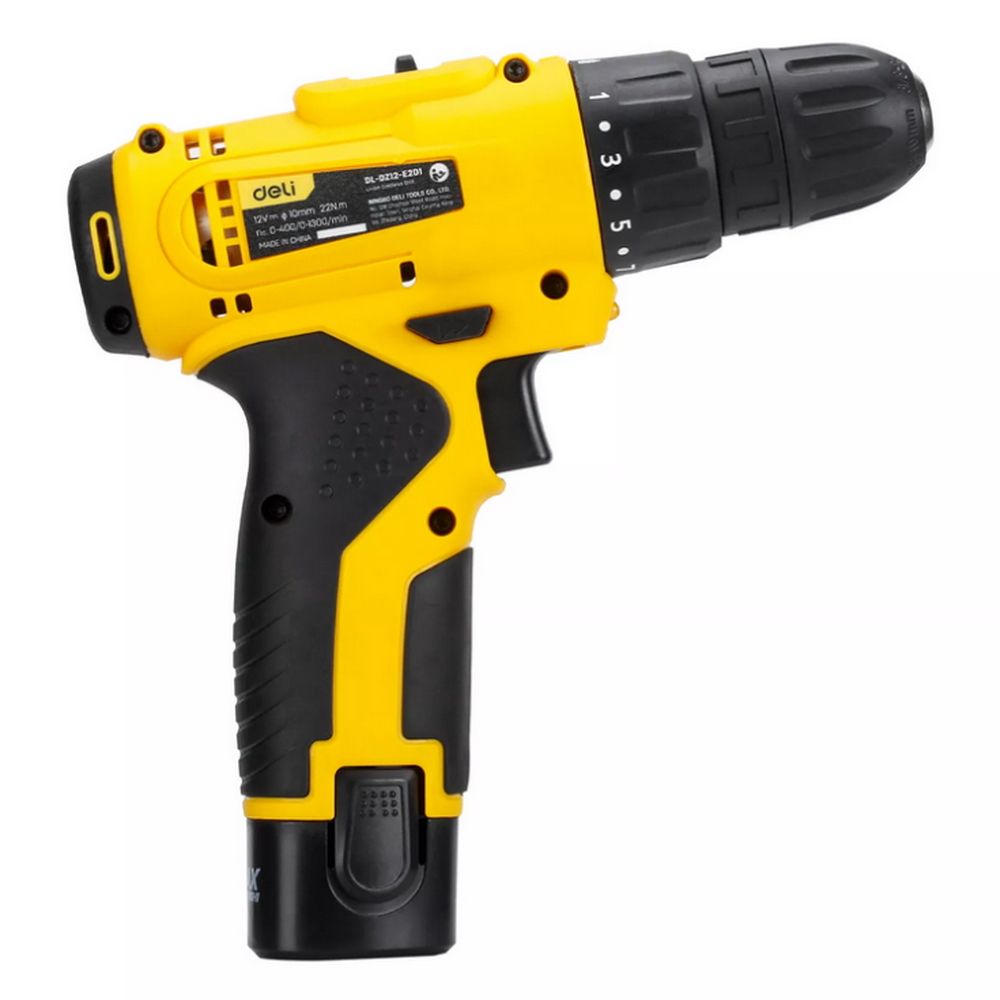 Дрель-шуруповерт аккумуляторная Deli DL-DZ12-E2D1 (2АКБ+ЗУ, 12В, 1,5А*ч, 22Нм, кейс)