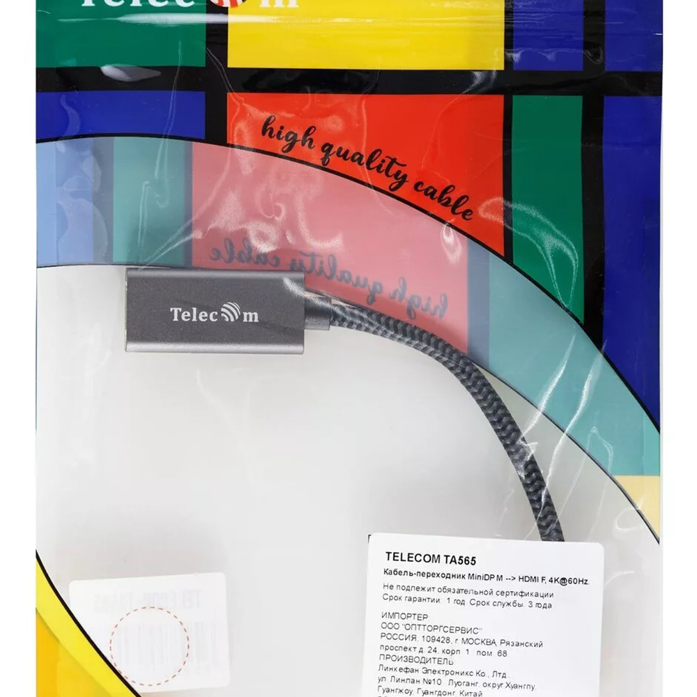 Адаптер miniDP --> HDMI-F 0.15м , оплетка, 4K@60Hz, Telecom (TA565) VCOM Адаптер-переходник Telecom Mini DisplayPort M/HDMI F (TA565)