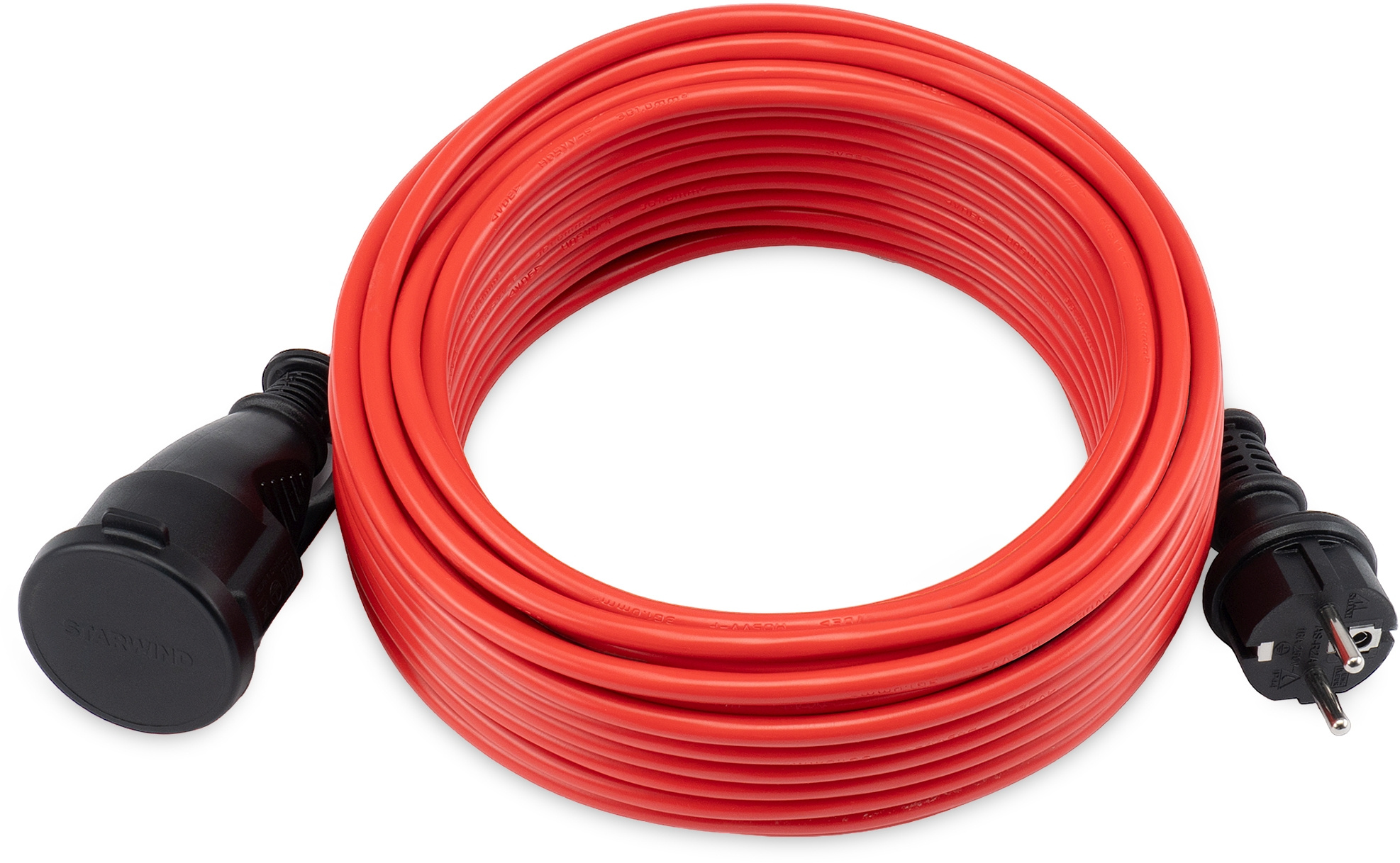 Удлинитель силовой Starwind ST-PS1.20/R-16 3x1.0кв.мм 1розет. 20м ПВС 16A без катушки красный