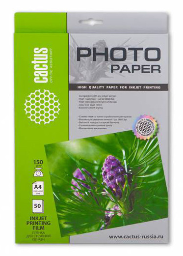 Пленка Cactus CS-FA415050 A4/150г/м2/50л./прозрачный для струйной печати