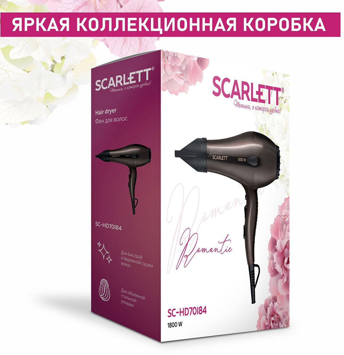 Фен Scarlett SC-HD70I84 1800Вт коричневый/черный