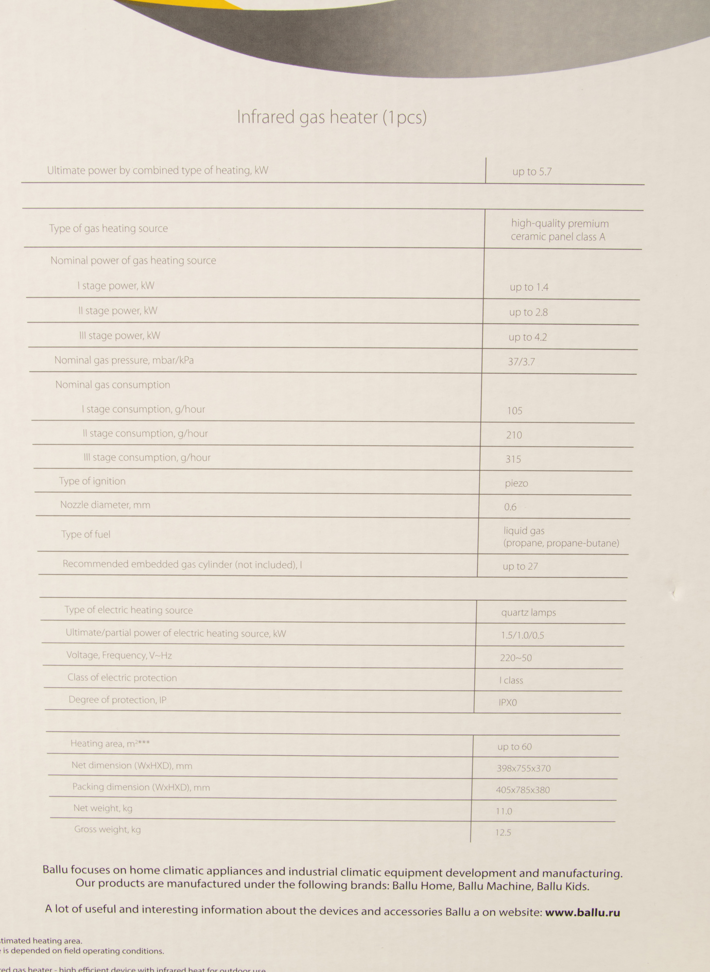 Обогреватель газовый Ballu Galaxy BIGH-55 H