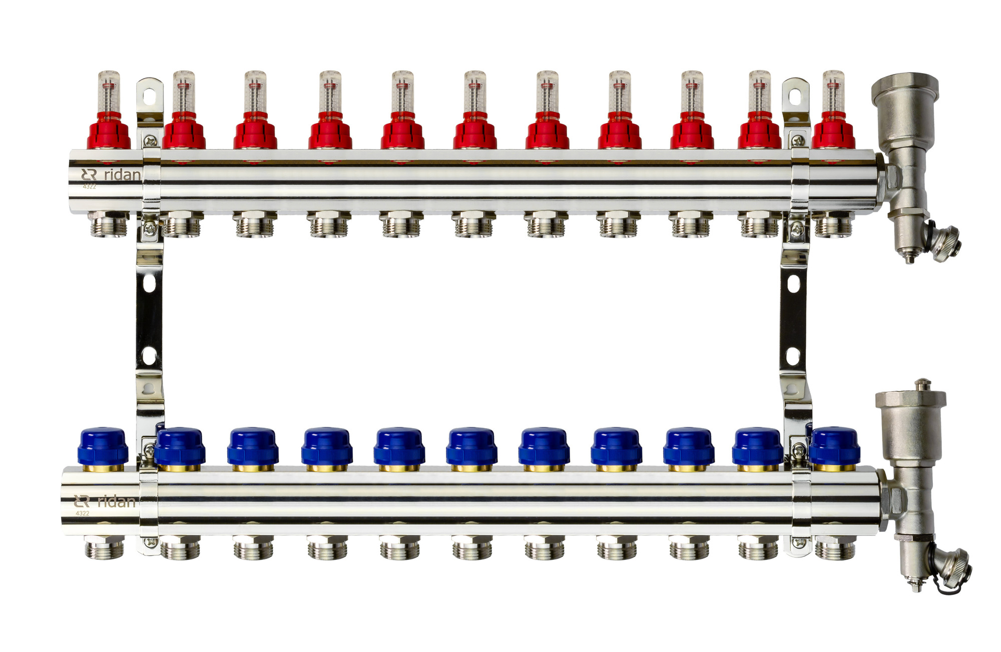 Коллекторная группа FHF-11RF set 11 контуров 1'x3/4' с расходомерами, воздухоотводчиками и кронштейнами