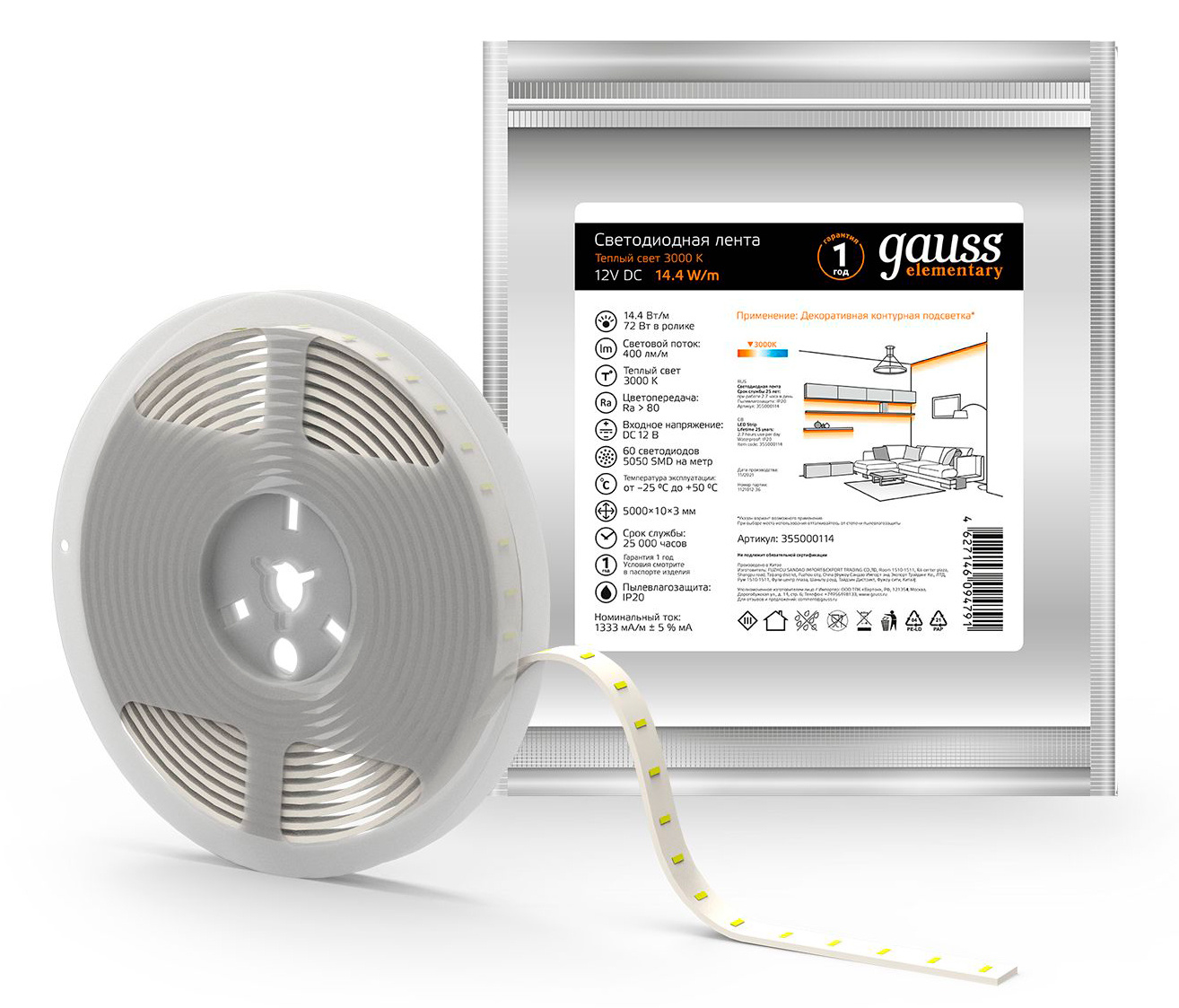 Блок питания Gauss Basic для лен.светод. серый (BT502)