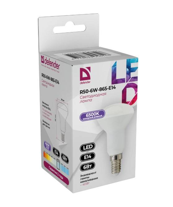 Defender Лампочка светодиодная R50-6W-865-E14 рефлектор, 6500 К, холодный дневной,1шт