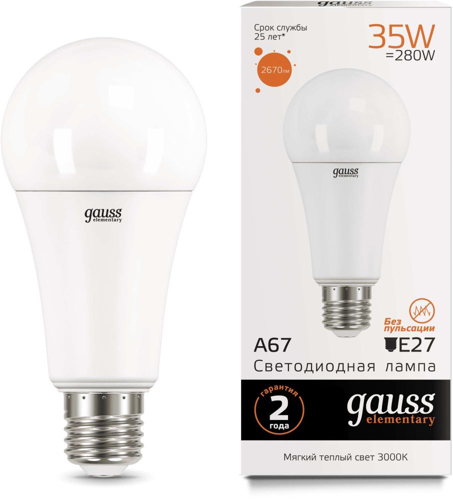 Лампа светодиодная Gauss Elementary A67 35Вт цок.:E27 груша 220B св.свеч.бел.хол. (упак.:10шт) (70235)
