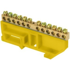 EKF sn0-63-14-dz Шина "0" N (6х9мм) 14 отверстий латунь желтый изолятор на DIN-рейку EKF PROxima