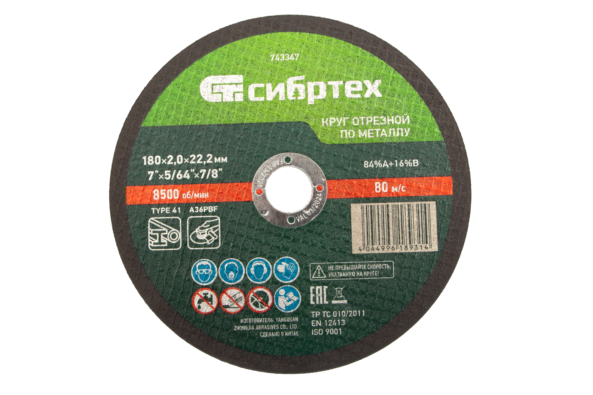 Круг отрезной по металлу, 180 х 1,6 х 22,2 мм (Луга)// Россия