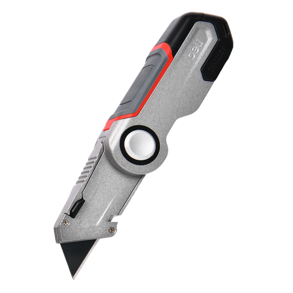 Строительный складной нож с Т-образным лезвием Deli DL040  в комплекте 4 лезвия, сталь SK5