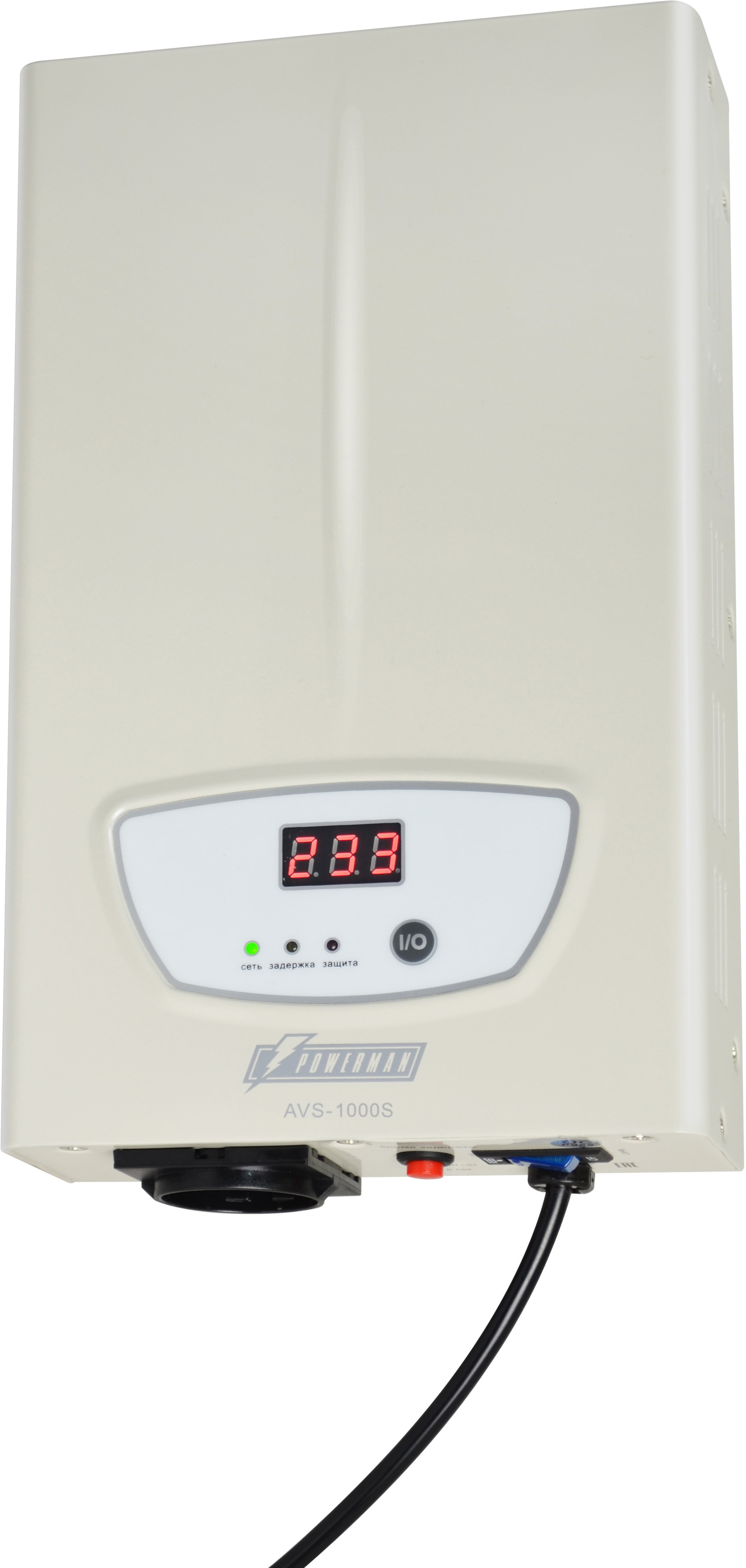 Стабилизатор POWERMAN AVS 1500S, ступенчатый регулятор, цифровые индикаторы уровней напряжения, 1500ВА, 140-260В, максимальный входной ток 12А, 2 евророзетки, IP-20, навесного исполнения, 310мм х 200мм х 68мм, 4,36 кг. POWERMAN AVS 1500S (POWERMAN AVS-150