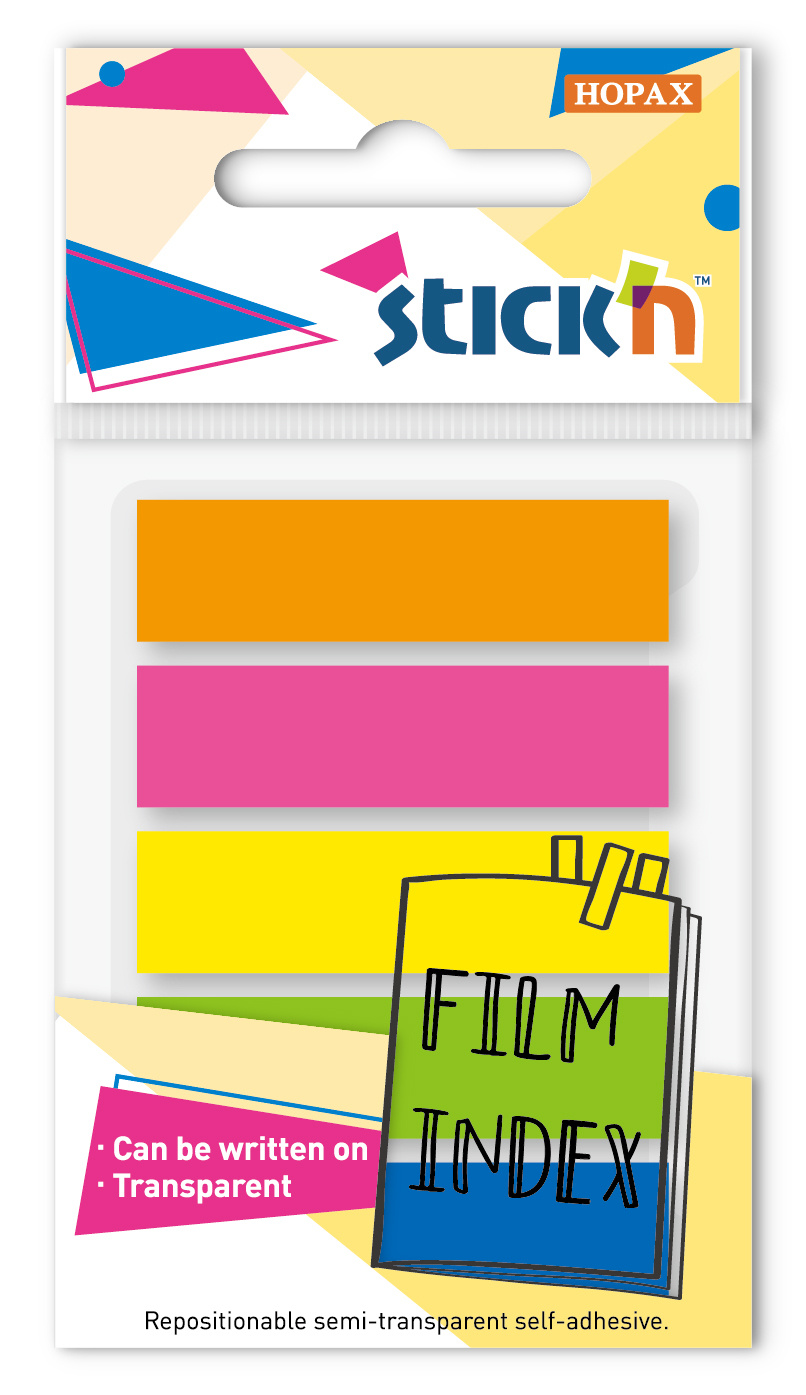Закладки самокл. индексы пластиковые Stick`n 21077 4цв.в упак. 25лист в обложке 25x45мм+12x45мм европодвес