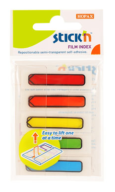 Закладки самокл. индексы пластиковые Stick`n 26072 45x12мм 5цв.в упак. 20лист стрелки Z-сложение европодвес