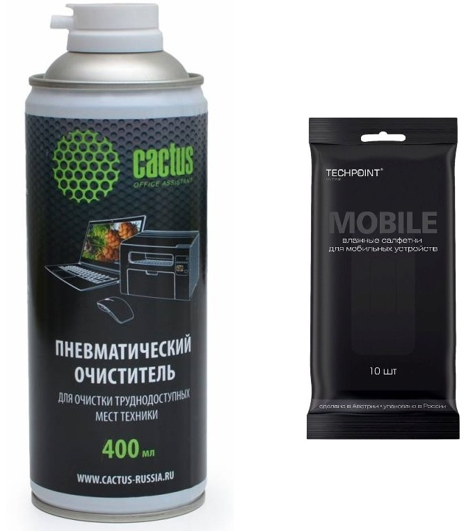 Чистящий набор (салфетки + очиститель) Cactus CS-Air400 для очистки техники 400мл