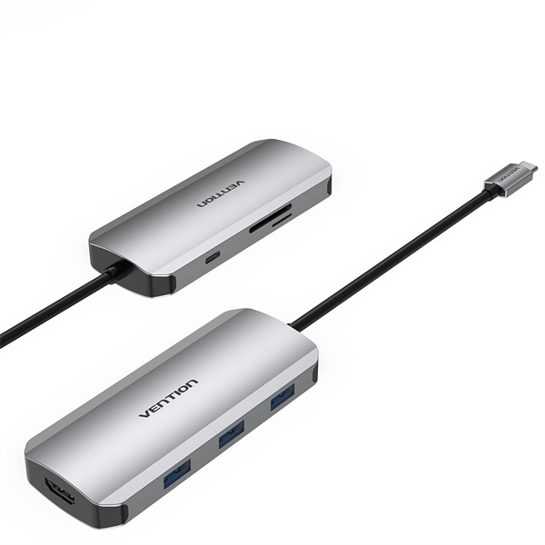 Порт-репликатор Vention USB-C to HDMI/USB 3.0x3/SD/TF/PD Docking Station Gray 0.15M Aluminum Alloy Type (TOJHB)
