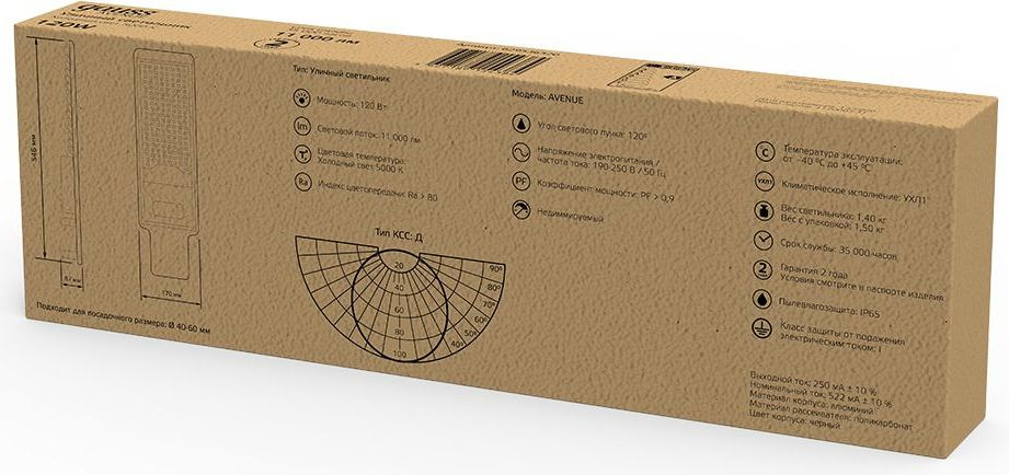 Светильник консольный Gauss 629536320 120Вт ламп.:168шт черный
