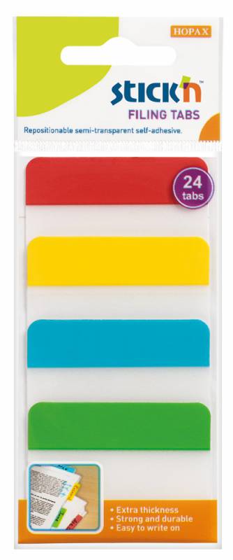 Закладки самокл. разделители пластиковые Stick`n 21608 38x51мм 4цв.в упак. 6лист с цветным краем европодвес