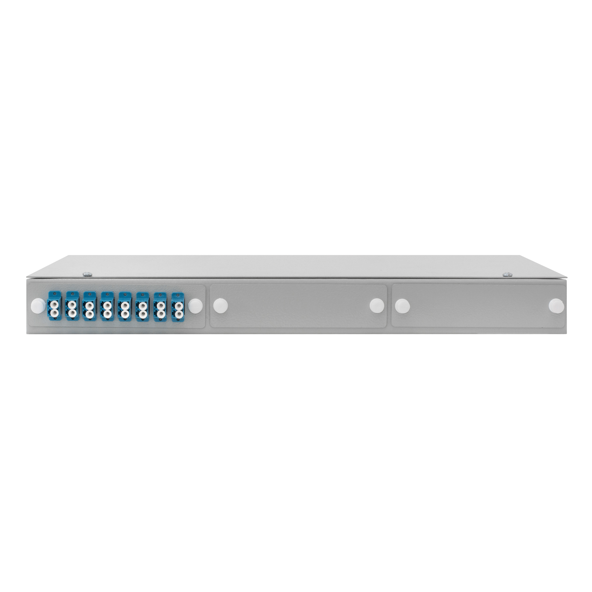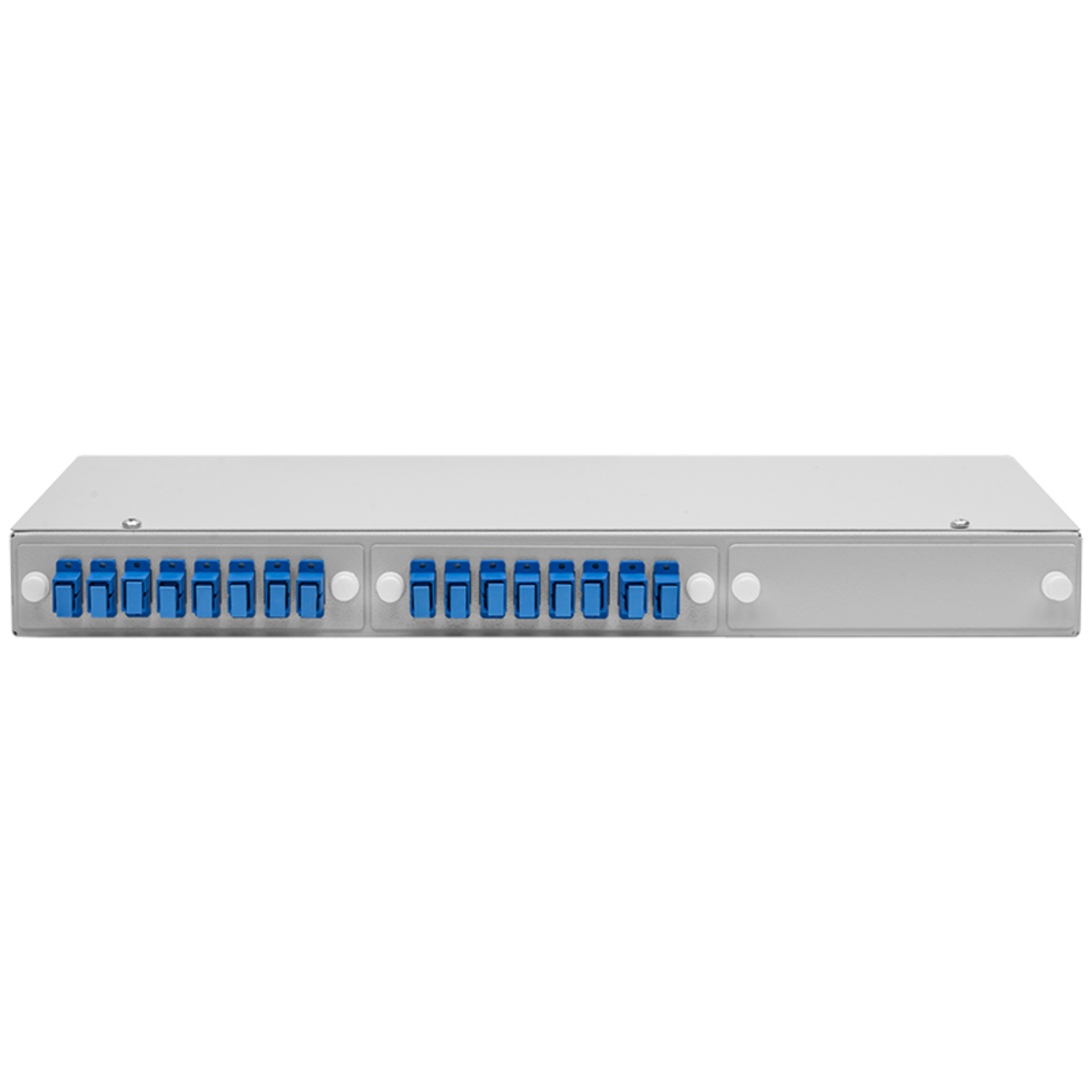 Кросс оптический 19" (ШКОС) укомплектованный на 16 LC портов (комплект с розетками и пигтейлами)