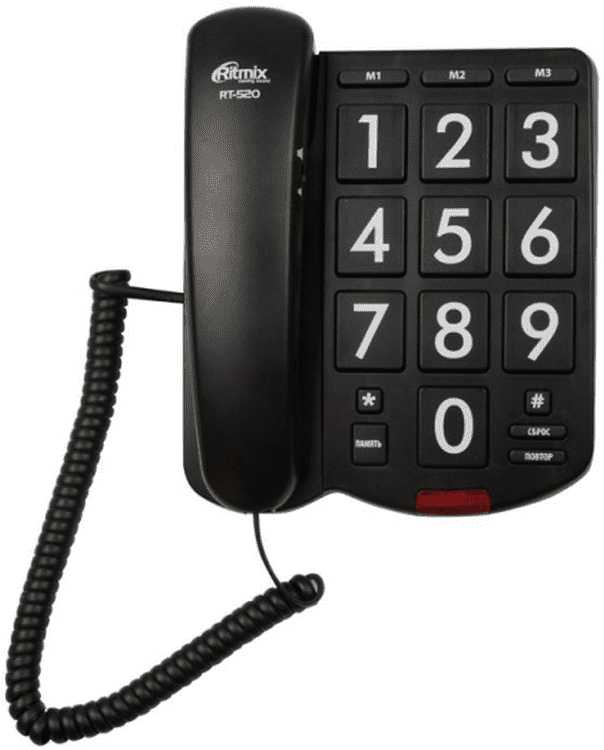 RITMIX RT-520 black Телефон проводной[повтор. набор, регулировка уровня громкости, световая индикац]
